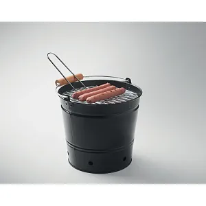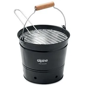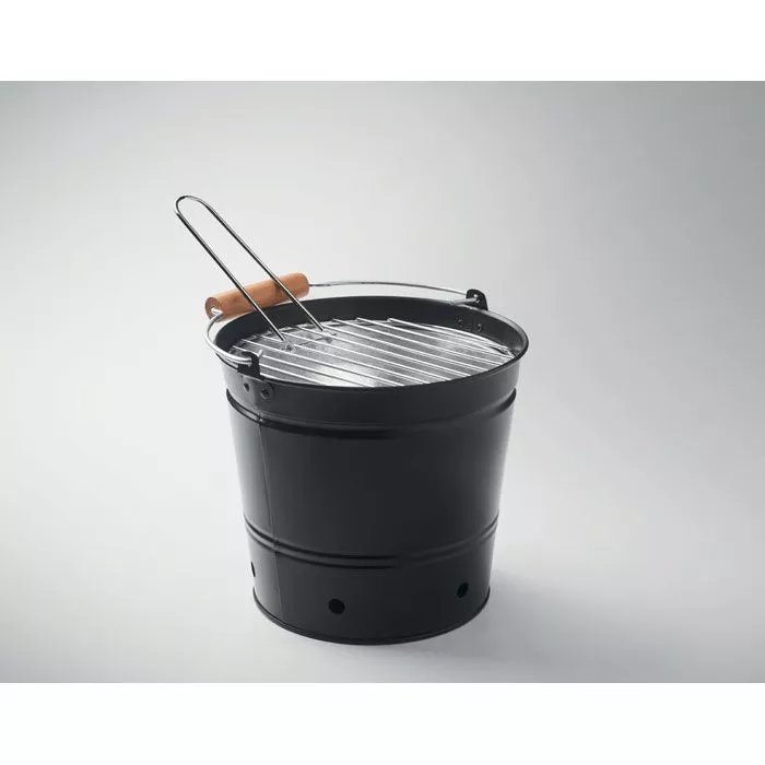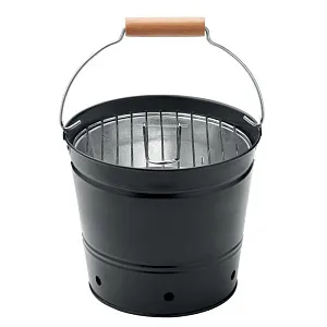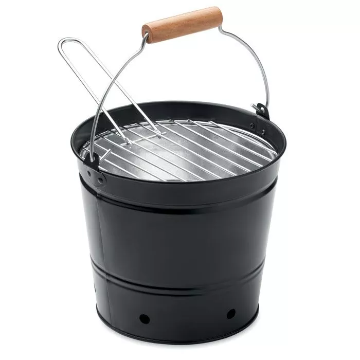 Железное переносное ведро-барбекю с грилем из нержавеющей стали с деревянной ручкой.