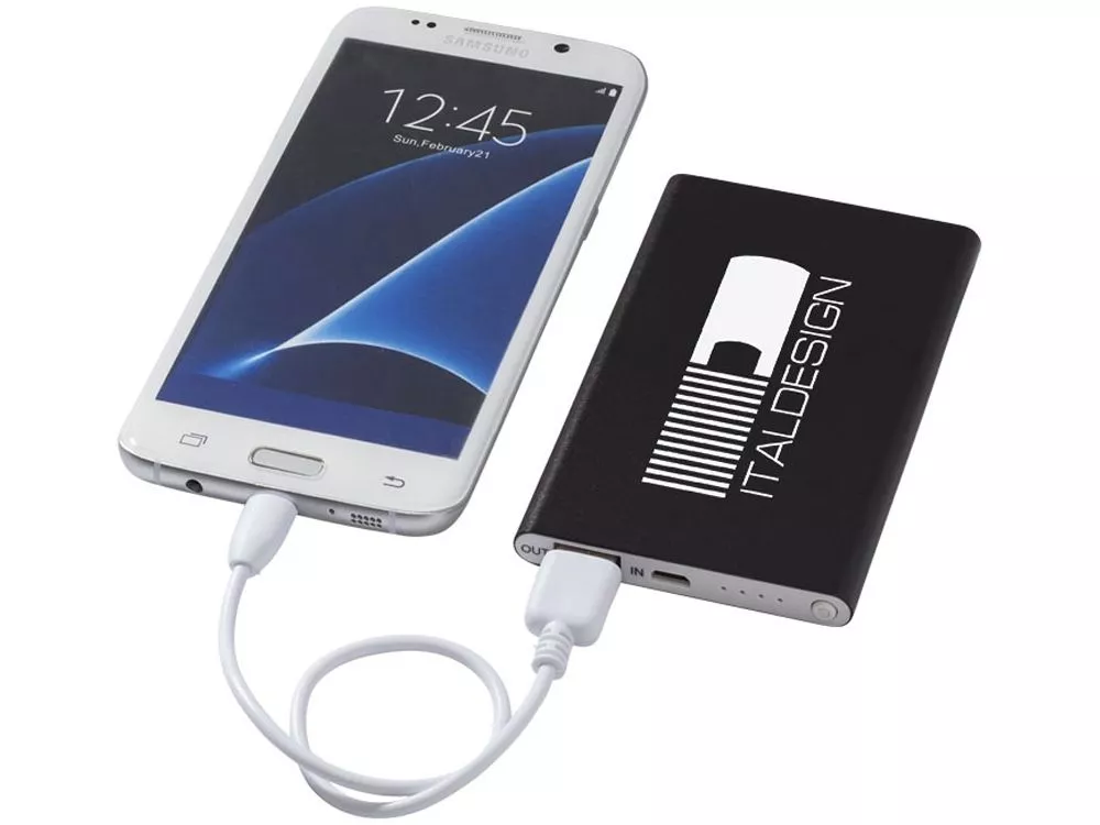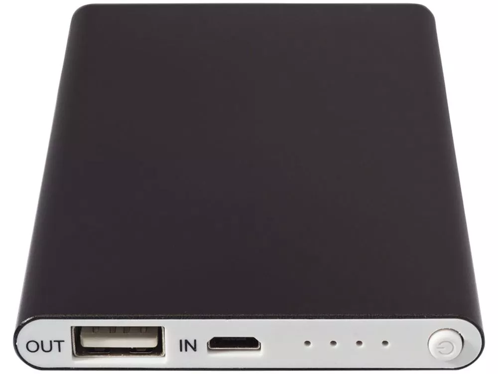 Алюминиевый повербанк Pep емкостью 4000 mAh. Изящное легкое алюминиевое зарядное устройство с литий-полимерным аккумулятором класса А емкостью 4000 mAh. Светодиодные индикаторы горят во время зарядки и показывают оставшийся заряд аккумулятора зарядного устройства. Входная и выходная мощность зарядного устройства – 5 В / 1 А. Включает кабель для зарядки с коннекторами USB и Micro-USB. Предлагается в белой подарочной коробке. Алюминий.