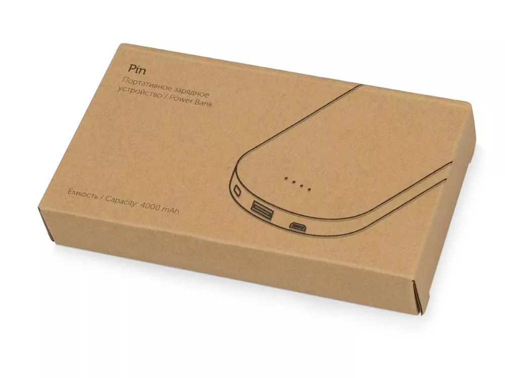Внешний аккумулятор Pin (4000 mAh) - идеальный подарок для сотрудников и партнеров. Большая площадь поверхности зарядного устройства представляет широкие возможности для персонализации. На нее можно нанести логотип компании, любимую цитату или оригинальный рисунок. На внешнем аккумуляторе имеется клип. Теперь гаджеты не обязательно держать в руках, можно прикрепить зарядное устройство к карману, ремню или рюкзаку.