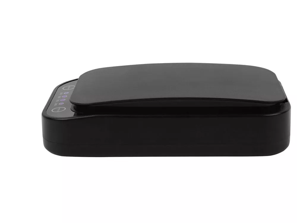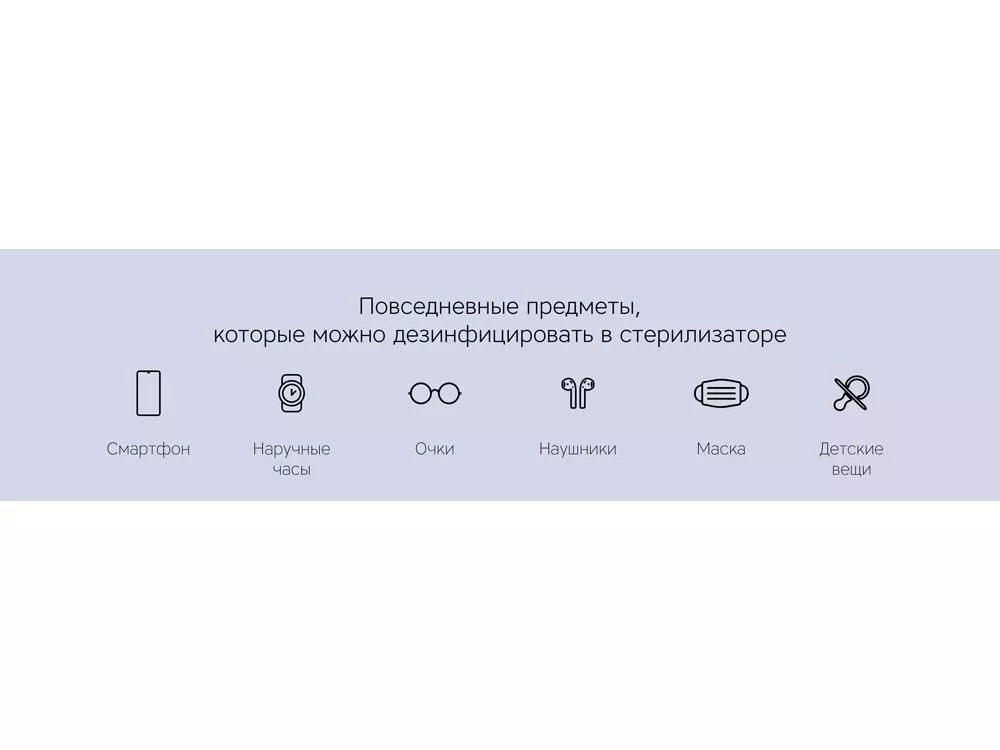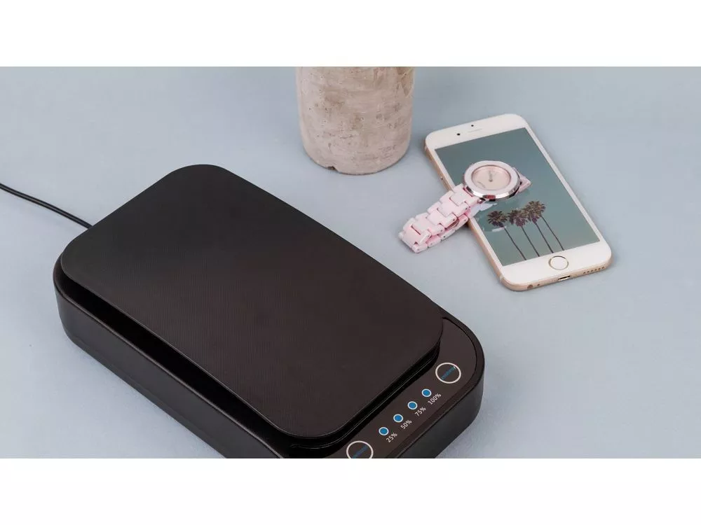 • Эффективность стерилизации 99,9% • Борьба с вирусами и бактериями • Беспроводная зарядка телефона • Ароматизация во время стерилизации Сенсорное управление Размер внутренней поверхности: 180 x 100 x 22 мм (7 телефоны) Мощность стерилизации: 2 x 1 Вт Мощность ароматизации: 1 Вт УФ-печать (УФ-печать цветные изделия) на данный товар осуществляется бесплатно. Оплачивается только настройка оборудования в размере 1100 рублей на весь тираж.