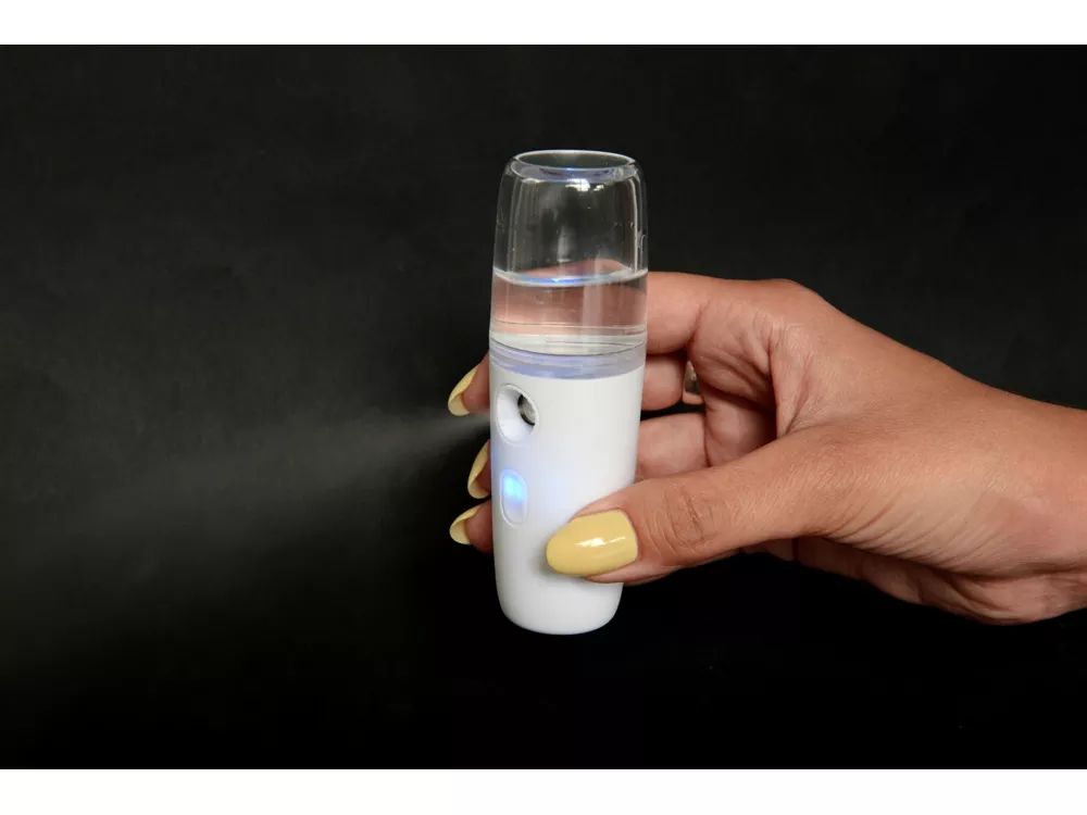 Портативный увлажнитель для лица - незаменимая вещь в знойную жару, а также спасение от сухости в зимнее время. Работает на аккумуляторе, заряжается с помощью usb провода, который идет в комплекте. Компактный размер, стильный дизайн и максимально полезный функционал. Время работы 3 часа, объем 30 мл. Инструкция в комплекте. Не рекомендуется добавлять арома-масла. Тампопечать (1 цвет (цветные изделия)) на данный товар осуществляется бесплатно. Оплачивается только настройка оборудования в размере 2300 рублей на весь тираж.