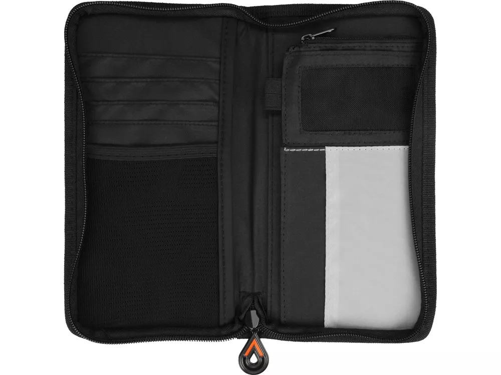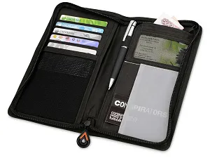 Портмоне для путешествий из прочного полиэстера сделает любую поездку более комфортной. Здесь предусмотрено место для паспорта, билетов и денег, кармашки для пластиковых карт, а также удобный держатель для ручки. Портмоне закрывается на молнию. Портмоне Эдисон – прекрасный подарок для тех, кто любит путешествовать и проводит много времени в разъездах.