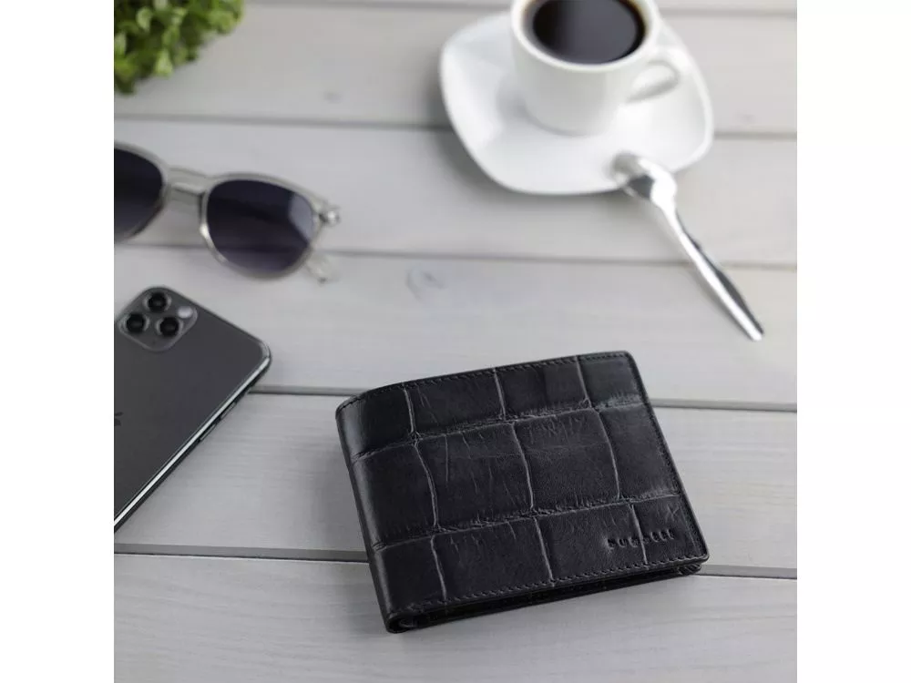 ПОРТМОНЕ NEVIO С ЗАЩИТОЙ ДАННЫХ RFID Откройте для себя NEVIO: дань уважения первозданной природе. В этой изысканной коллекции сочетаются естественная элегантность и современный стиль. Премиальная воловья кожа с тиснением под крокодила искусно комбинируется с гладкой фактурой козьей кожи. Металлические детали придают индивидуальный характер, подчеркивая природную красоту материалов. Коллекция NEVIO – классика вне времени. Создай свой идеальный образ! СВОЙСТВА Функциональная организация: 2 основных отделения для купюр, 7 слотов для карт, 5 карманов, сетчатый карман, отделение для монет, защита данных RFID. Материал: воловья кожа / козья кожа / полиэстер Размер: 12,5 x 2,5 x 9,3 см Вес: 0,08 кг