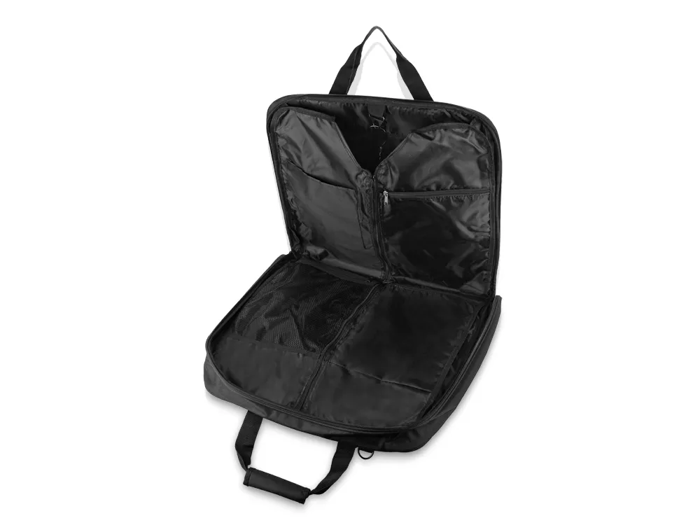 Портплед Остин – незаменимый аксессуар для деловой поездки. В дорожный чехол можно сложить костюм или несколько комплектов одежды. Благодаря непромокаемой ткани и форме, вещи в нем не мнутся и не пачкаются в процессе транспортировки. Внутри имеются отделения для необходимых мелочей. С нашим портпледом вы сэкономите время и деньги на химчистке.