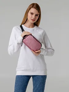 Розовый мрамор долговечен, податлив в обработке и хорошо сочетается практически с любыми материалами и цветами в интерьере. То же самое можно сказать и про поясную сумку — прочная, вместительная и прекрасно дополняющая образ. Аксессуар, который можно приравнять к украшению.