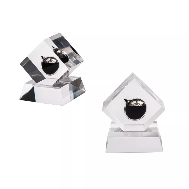Пресс-папье с чёрной каплей нефти на прозрачной подставке.