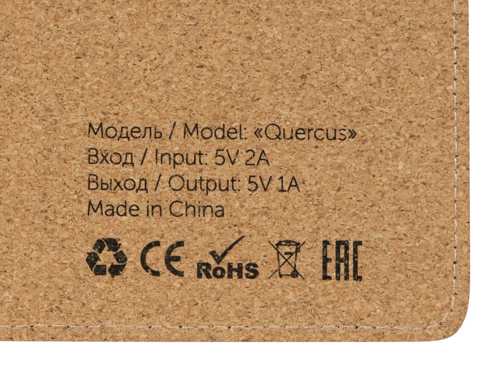 Большой (45 х 40 см) коврик из пробки для мышки, который может заряжать Qi-совместимые устройства методом беспроводной зарядки. Коврик позволяет разместить не только мышку, но и небольшой ноутбук или планшет. Коврик решает проблему скольжения мышки, обеспечивает бесшумное перемещение мыши по поверхности, позволяет декорировать интересным способом рабочее место. В комплекте длинный зарядный кабель 100 см. Коврик не складывается. - беспроводная зарядка на 5 Вт - разъем micro USB - большой размер поля для нанесения - кабель 100 см в комплекте Гравировка (CO2 лазер) (Без чернения) на данный товар осуществляется бесплатно. Оплачивается только настройка оборудования в размере 1000 рублей на весь тираж.