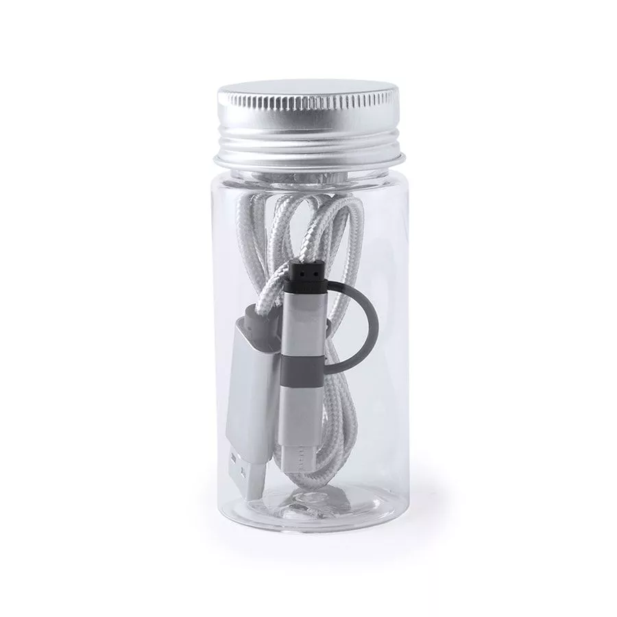 Универсальный зарядный кабель в оригинальном оформлении, упакован в пластиковую прозрачную баночку с завинчивающейся крышкой. Зарядный кабель имеет самые востребованные разъемы. Благодаря особому нейлоновому покрытию и прочным алюминиевым коннекторам кабель идеально подходит для интенсивного использования. Прекрасные возможности по нанесению логотипа, как на корпус банки, так и на ее крышку. Технические характеристики Разъемы: Micro USB, Lightning и Type C Длина кабеля: 100 см