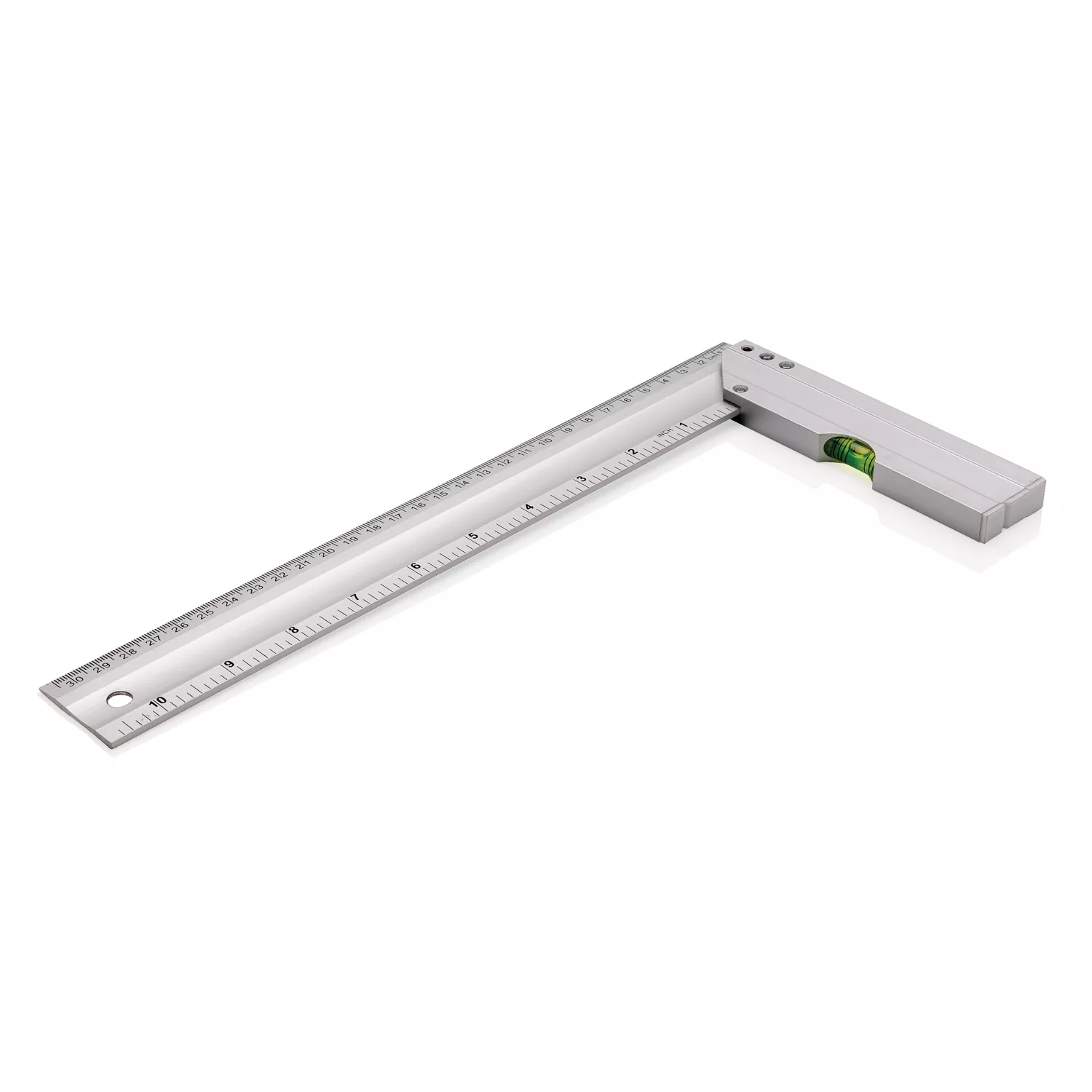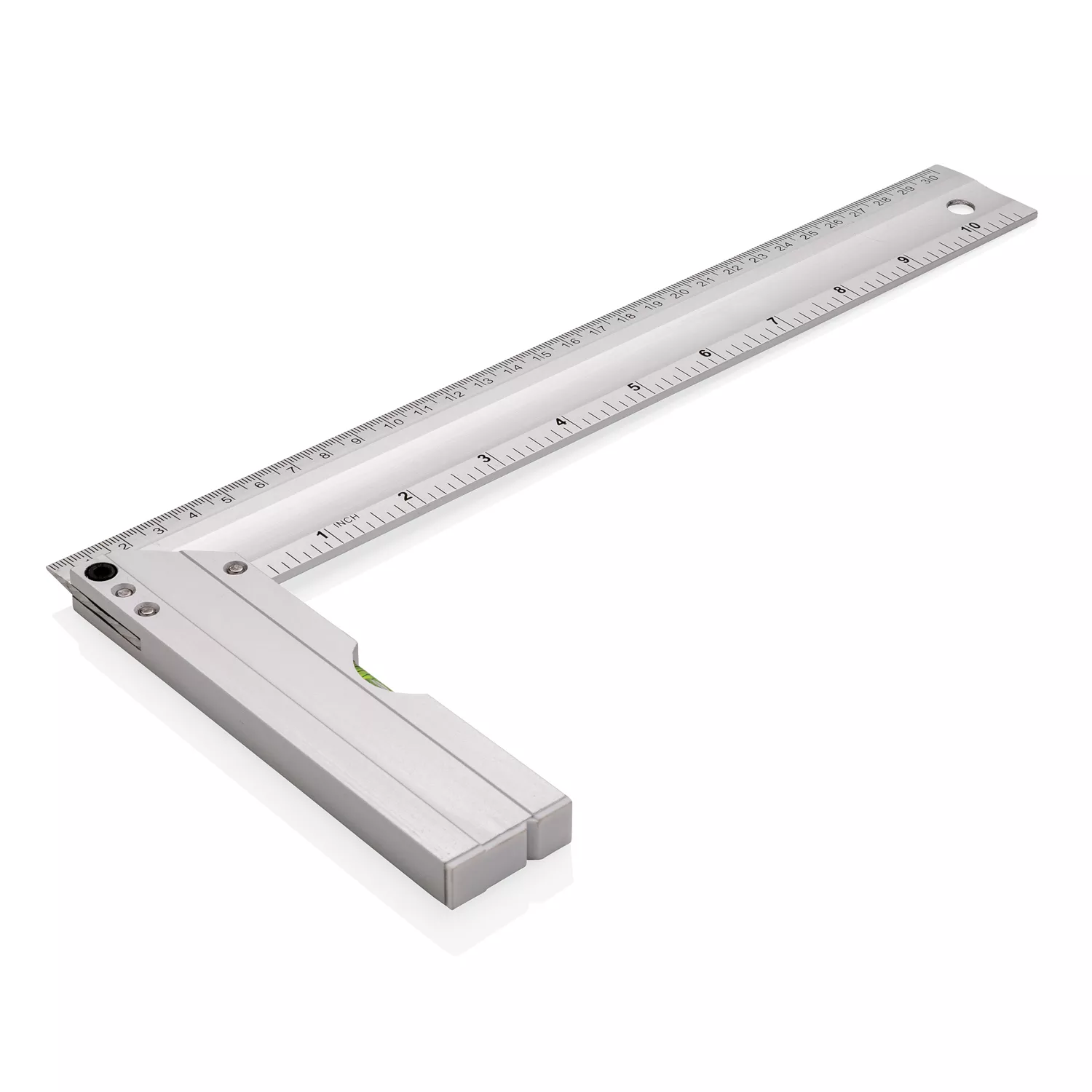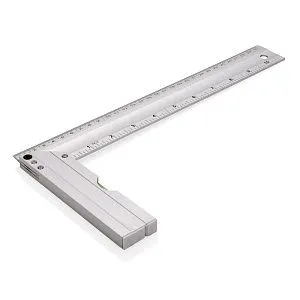 Настоящим профессионалам своего дела обязательно пригодится прямоугольная линейка с уровнем. Она подходит для черчения квадратов и измерения углов, имеет двухстороннюю печать: на одной стороне указаны сантиметры, на другой — дюймы. Длина линейки 30 см (10 дюймов). Точность уровня — 0,5 см. Изготовлена из алюминия.
