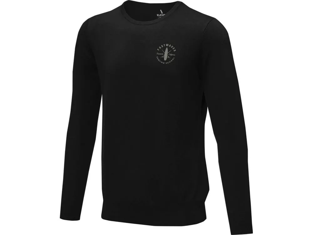 Мужской пуловер Merrit. Круглый вырез горловины. Воротник гладкой вязкой в рубчик. Манжеты гладкой вязкой в рубчик. Нижняя манжета гладкой вязкой в рубчик. Атласный кант по линии горловины. Комфортный ярлык-трансфер на изделии.