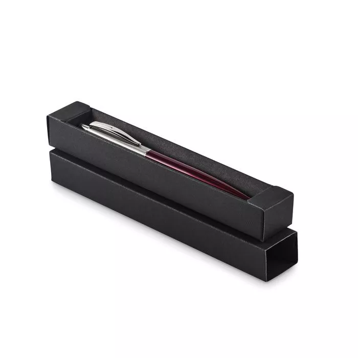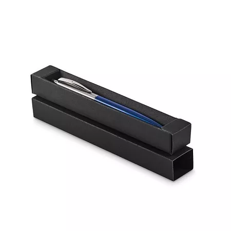 Push button ball pen in recycled stainless steel barrel. Blue ink. Presented in gift box.