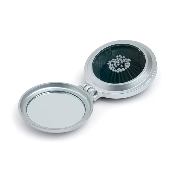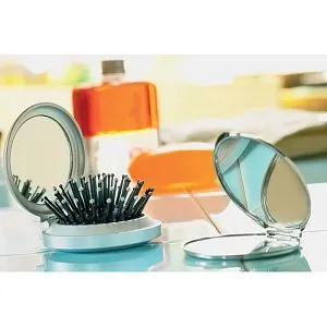 Складная расческа для волос с зеркальцем в пластиковом корпусе.