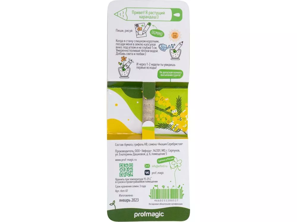 Растущие карандаши в мини-формате созданы для тех, кому не терпится поскорее посадить выбранное растение. Принцип работы такой же, как и у больших карандашей: пишите карандашом до тех пор, пока не останется 1 см до капсулы. Когда он станет коротким, посадите его под углом, погрузив капсулу в землю не более, чем на 1 см. Поливайте и ухаживайте за ним, и уже через 15-25 дней акация даст первые всходы. Тампопечать (1 цвет (цветные изделия)) на данный товар осуществляется бесплатно. Оплачивается только настройка оборудования в размере 3600 рублей на весь тираж.