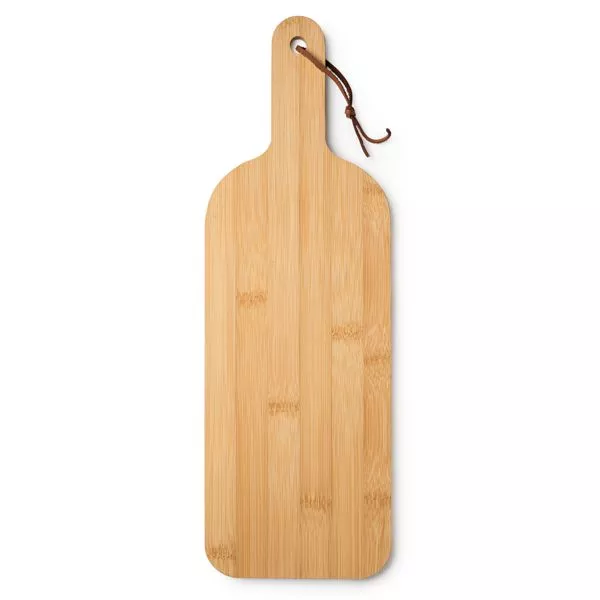 Бамбуковая разделочная доска с ручкой для удобного использования и шнурком для подвешивания. Идеально подходит для повседневного использования.