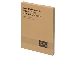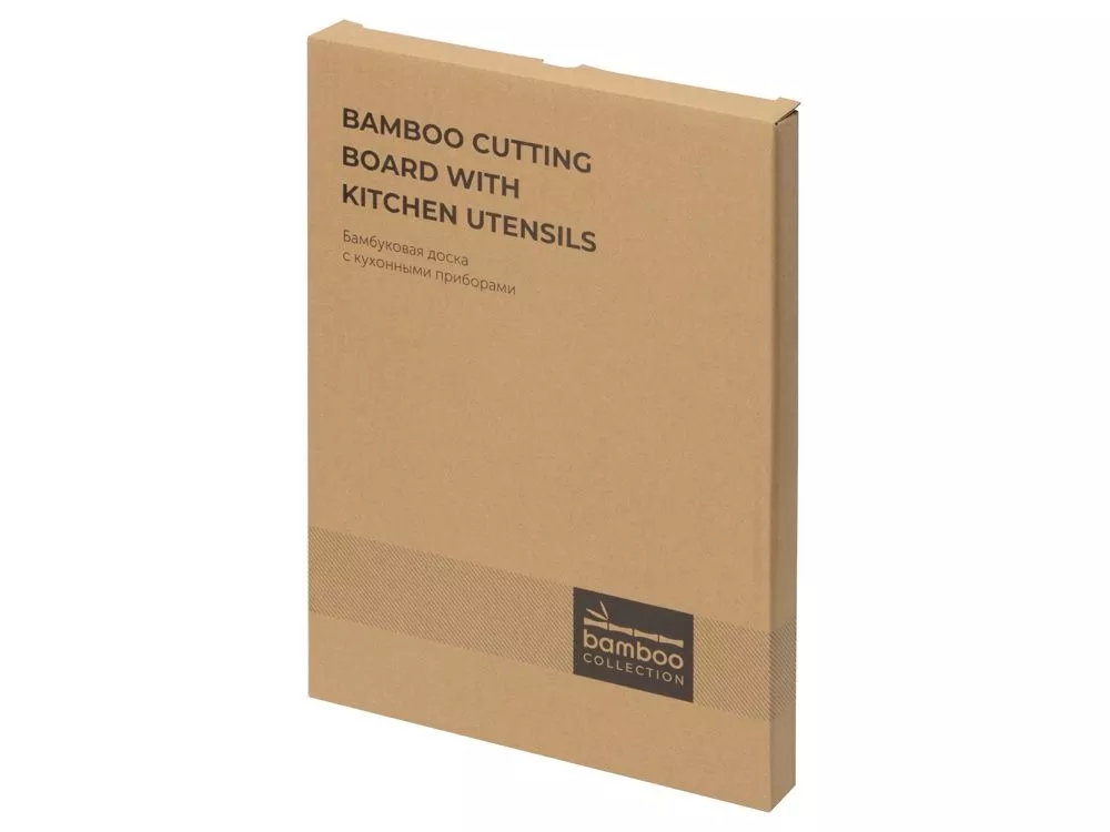 Бамбуковая доска с кухонными принадлежностями - отличный подарок для любителя готовки и кулинарии. В комплекте скошенная лопатка и ложка с функцией вилки. На доске имеется прорезь для подвешивания доски. Гравировка (Без чернения) на данный товар осуществляется бесплатно. Оплачивается только настройка оборудования в размере 500 рублей на весь тираж.