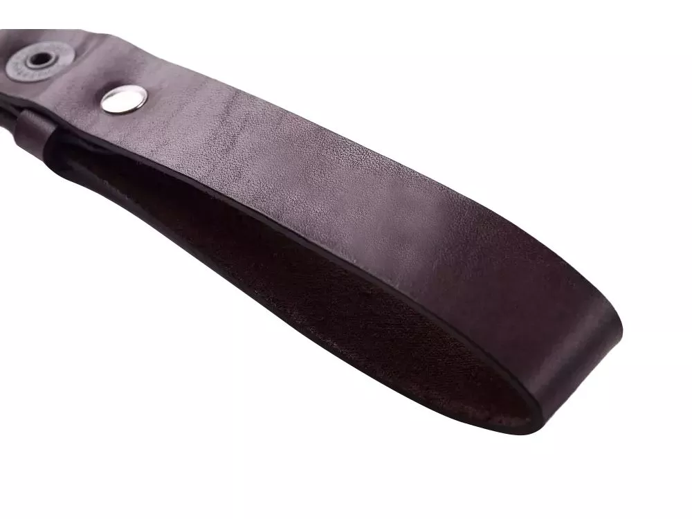 Ремешок сшит из прочной кожи оранжевого цвета. Оборудован надёжным металлическим карабином, самопроизвольное расцепление которого невозможно. Ключи, прицепленные к нему, обречены вечно храниться в глубинах сумки или кармана джинсов, и у них нет ни единого шанса потеряться. Прицепить ремешок можно к шлёвке джинсов или к куртке.