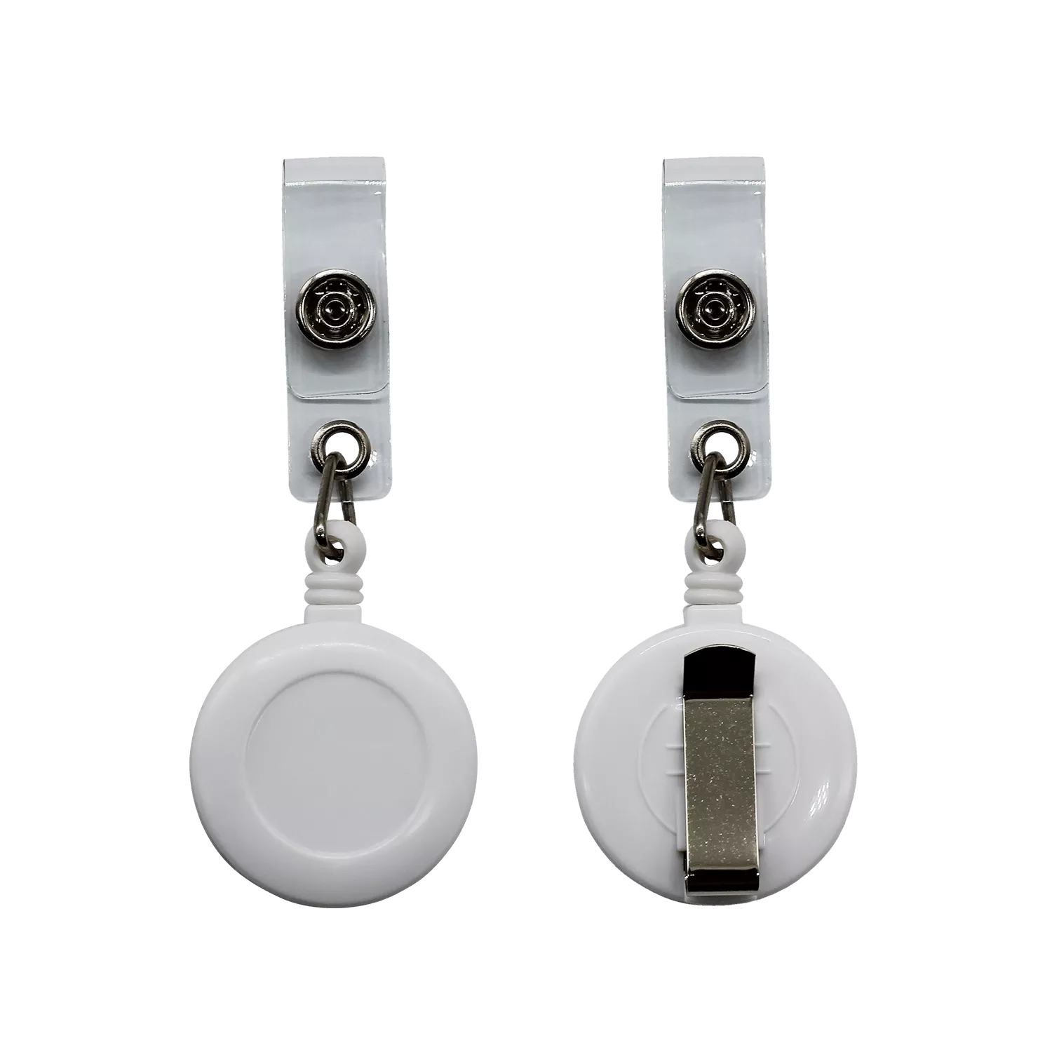 Ретрактор работает с помощью вытяжной нити длиною 85 см. Пружинный механизм обеспечивает сворачивание нити обратно в катушку. Лицевую часть ретрактора можно забрендировать методом УФ-печати, тампопечати или наклейкой с заливкой смолой. Задняя часть ретрактора оснащена металлическим клипом для удобного крепления.