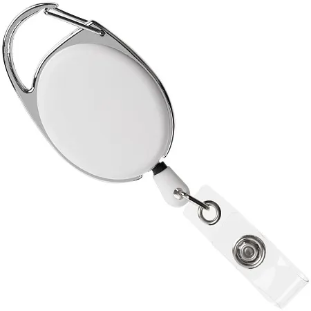 Ретрактор крепится к одежде с помощью карабина, а с другой стороны можно поместить бейдж, визитку или магнитную карту. В корпусе спрятан сворачивающийся шнур, который позволяет при необходимости демонстрировать содержимое держателя, не снимая его.