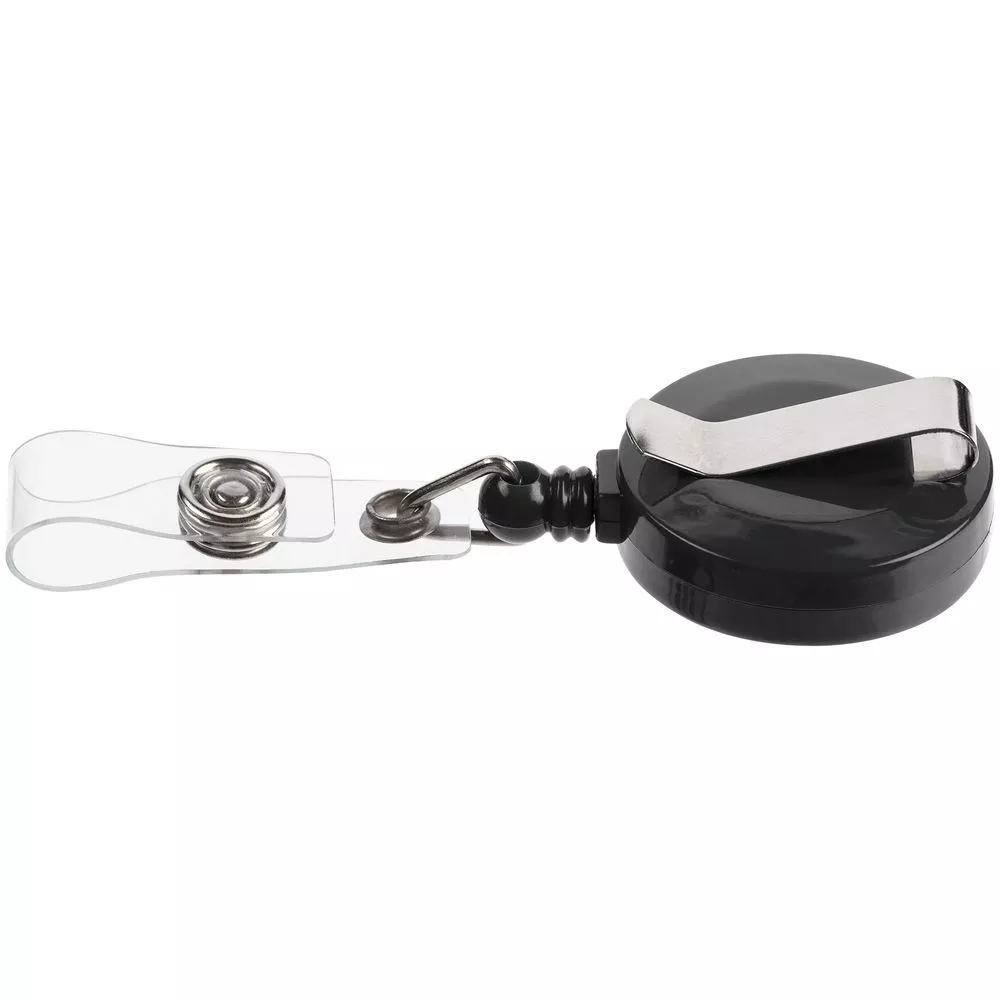 Ретрактор крепится к одежде, а с другой стороны можно поместить бейдж, визитку или магнитную карту. В корпусе спрятан сворачивающийся шнур, который позволяет при необходимости демонстрировать содержимое держателя, не снимая его.