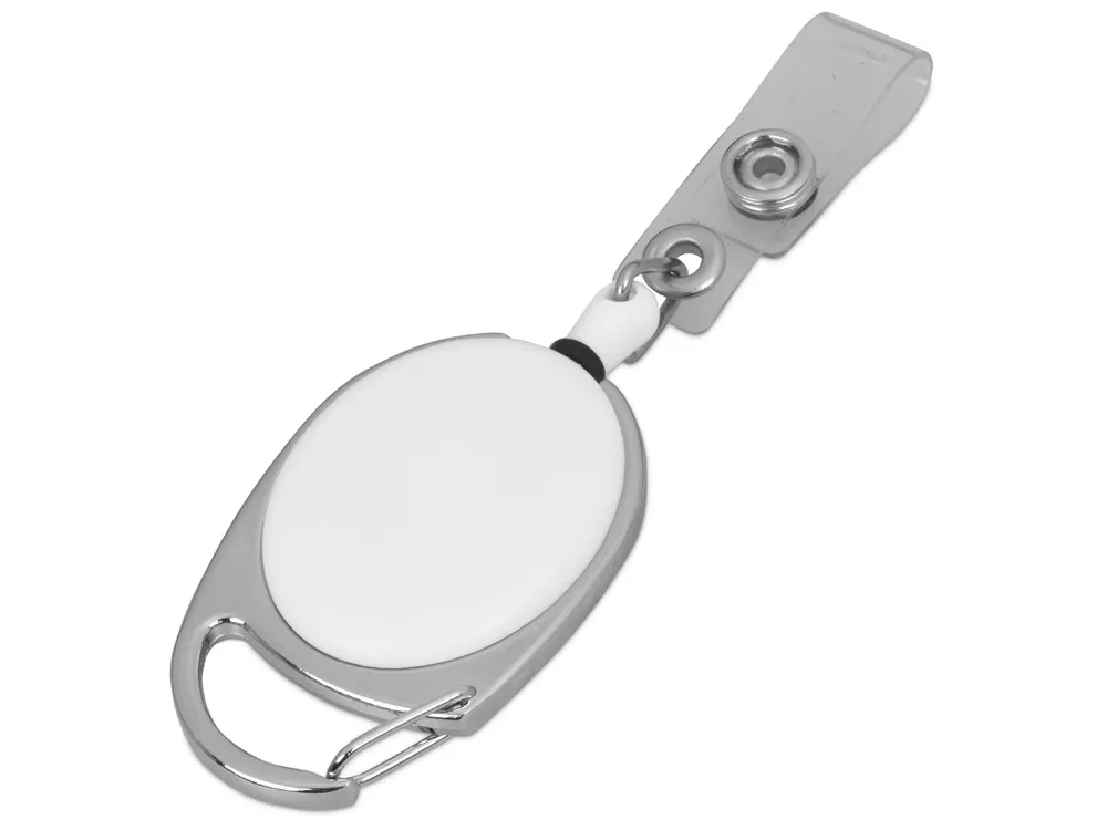 Ретрактор надежно крепится к поясу или другим вещам при помощи металлического карабина. Бейдж или пропуск удобно закрепляется кнопочным механизмом с петлей. Длина шнура - 80 см.