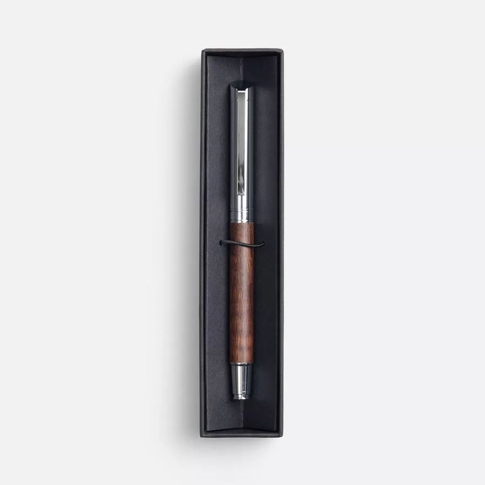 Роллер Waldo — сочетание элегантности и надежности. Корпус роллера выполнен из хромированного металла и дополнен ореховым деревом, что придает изделию неповторимый теплый оттенок и естественную текстуру.