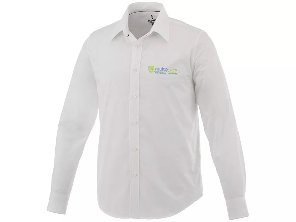 Рубашка с длинными рукавами Hamell. Скрытая пуговица под воротником. Стрейч-ткань. Регулируемый манжет на одной пуговице. Атласная окантовка внутренней части горловины. Гравированные пуговицы в цвет изделия. Комфортный ярлык-трансфер на изделии. Поплин из 96% хлопка и 4% эластана. 118 г/м².
