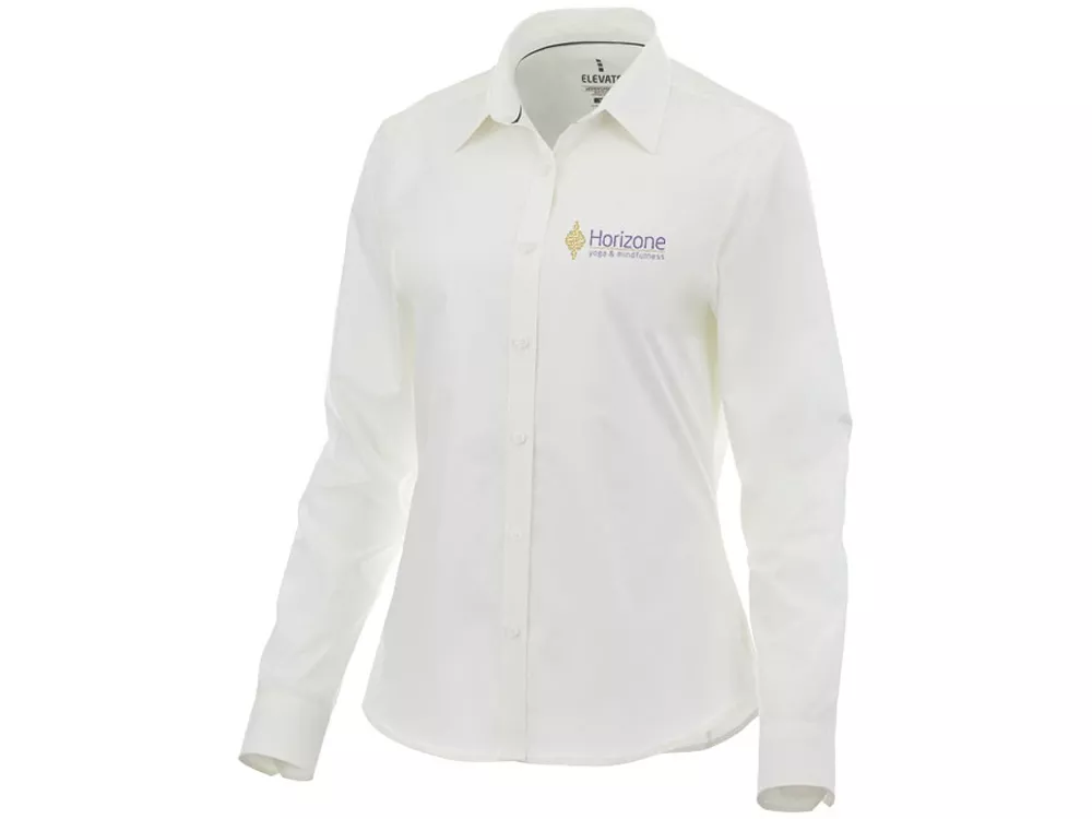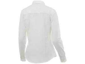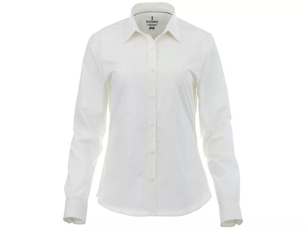 Женская рубашка с длинными рукавами Hamell. Стрейтч-ткань. Регулируемый манжет на одной пуговице. Атласная окантовка внутренней части горловины. Швы моделирующие фигуру и приталенный крой. Гравированные пуговицы в цвет изделия. Комфортный ярлык-трансфер на изделии. Поплин из 96% хлопка и 4% эластана. 118 г/м².