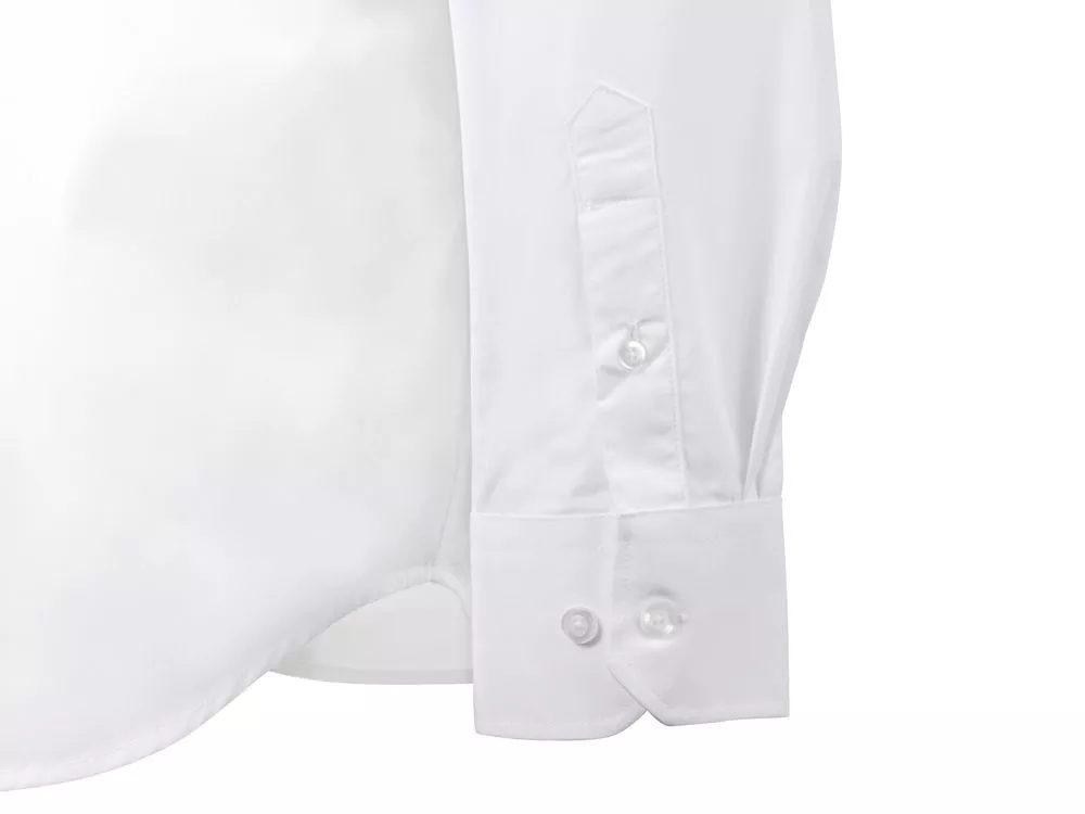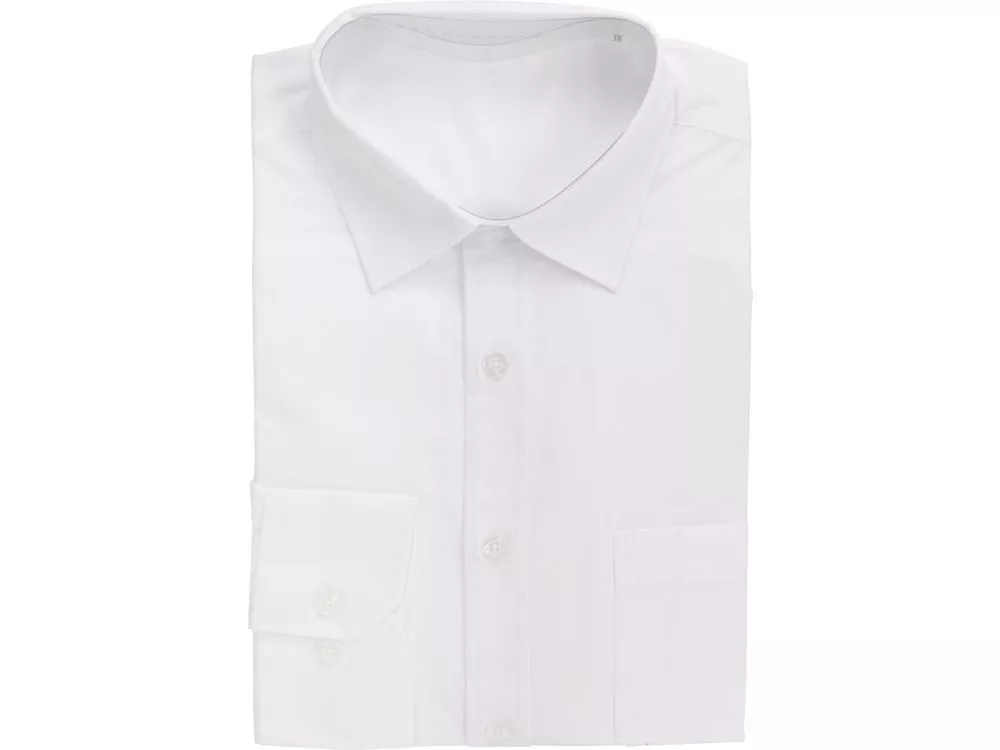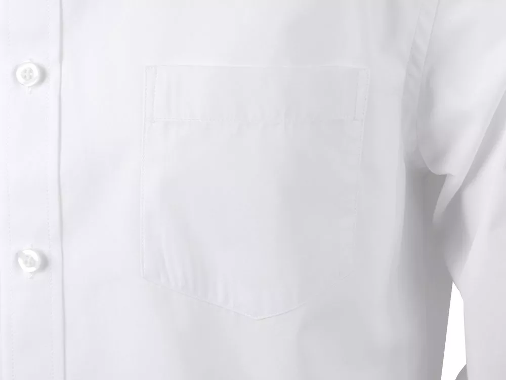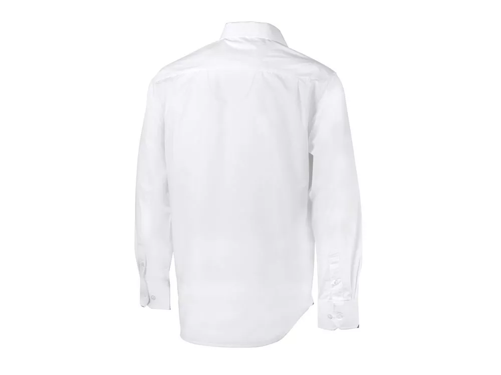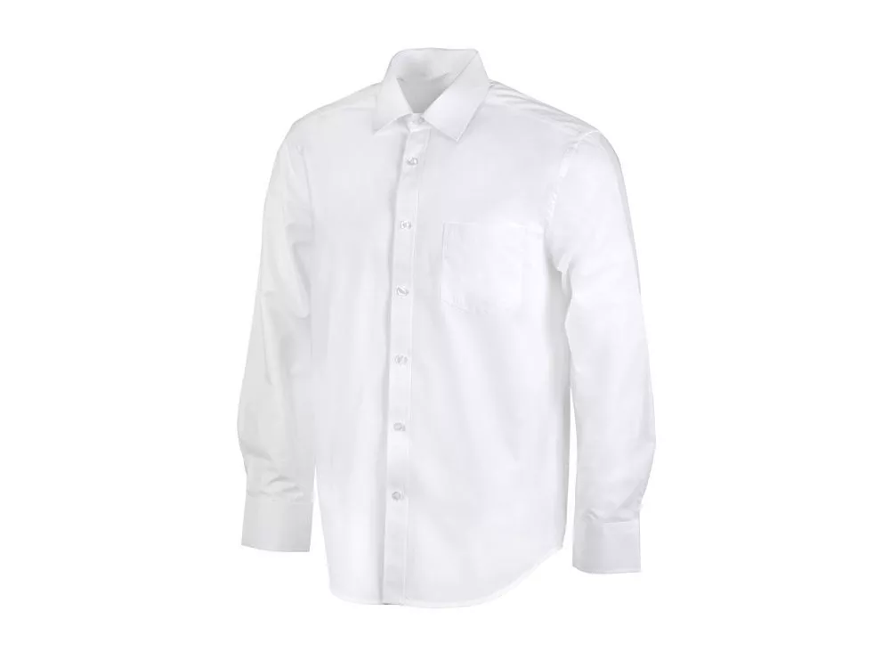 Рубашка мужская с длинным рукавом на семи пуговицах. Накладной карман на груди слева, на спинке складки из-под кокетки, манжеты с двумя пуговицами и пуговица по планке рукава. Трафаретная печать (1 цвет (белые изделия)) на данный товар осуществляется бесплатно. Оплачивается только настройка оборудования в размере 4400 рублей на весь тираж.