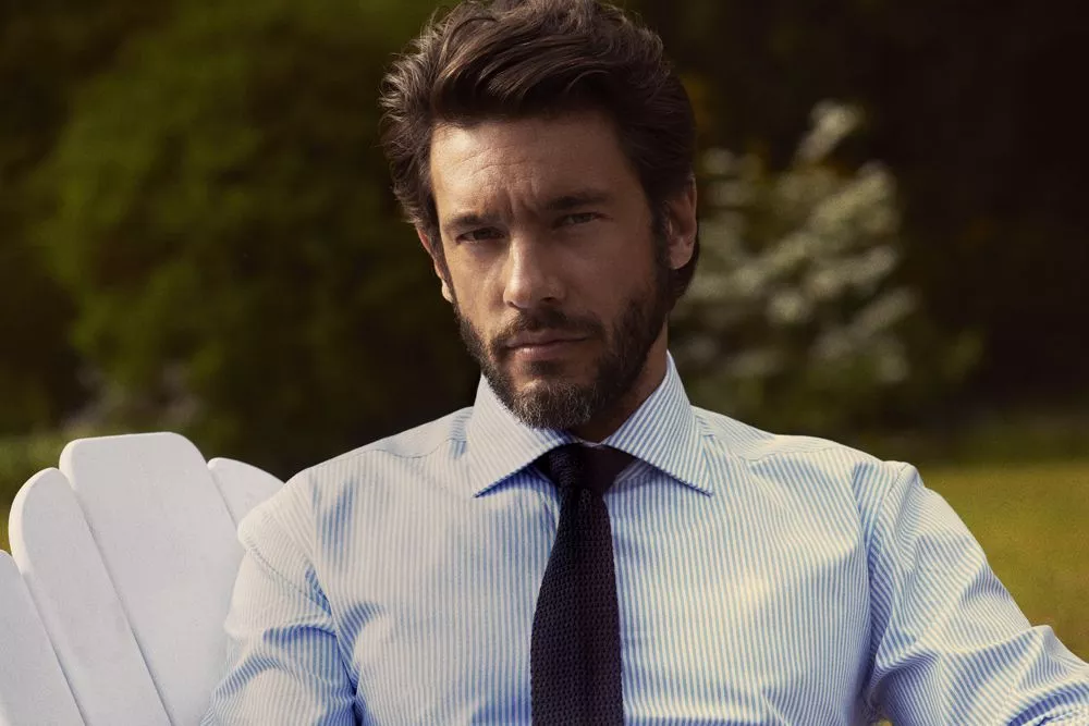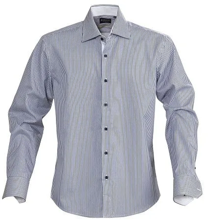 Мужская сорочка современного приталенного кроя из гребенного хлопка качества Easy Care (легко утюжить). Классический узор в полоску с контрастной отделкой оборотной части воротника, изнанки манжет и планки пуговиц. Упрочненные швы воротника и манжет.