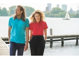 Мужское поло Beryl из переработанных органических материалов с коротким рукавом. Экологическая рекламная одежда. Поанка в двумя пуговицами. Воротник гладкой вязкой в рубчик. Манжеты гладкой вязкой в рубчик. Обшивка внутри воротника. Двойная строчка на воротнике и внизу изделия. Трикотаж Piqué из 70 % органического хлопка и 30 % переработанного полиэстера. 220 г/м².