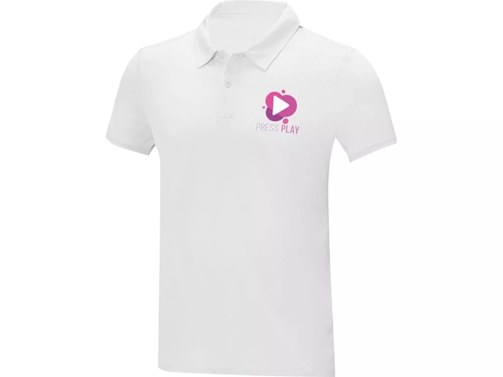 Мужская стильная футболка поло с короткими рукавами Deimos. Возможность нанесения на внутреннюю часть фирменной символики. Планка с двумя пуговицами. Для большего комфорта основной ярлык можно оторвать или отрезать. Обработка воротника обтачкой из основной ткани. Передний боковой шов со строчкой флатлок. Сетчатая ткань с покрытием cool fit 100% Полиэстер, 105 g/m2.