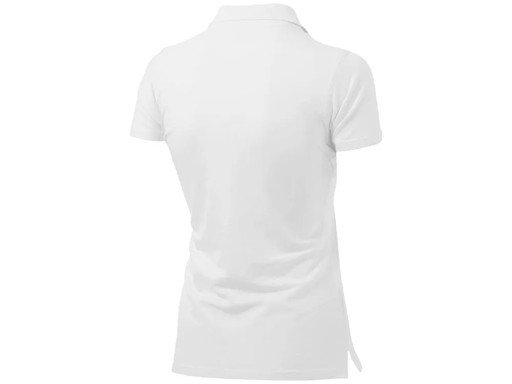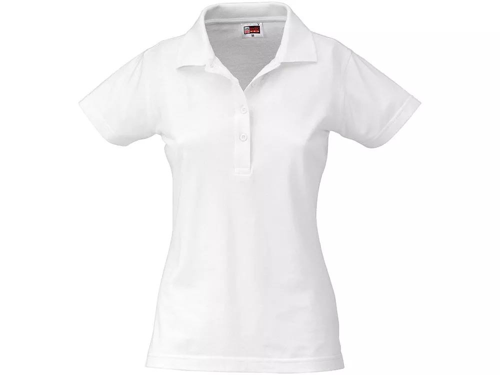 Женская рубашка-поло First. Воротник 1х1. Обшивка внутри воротника. Мужская и детская модели с 2 пуговицами, женская - с 4 пуговицами. Пуговицы с гравировкой в тон. Пике, 100% хлопок. 160 г/м2.