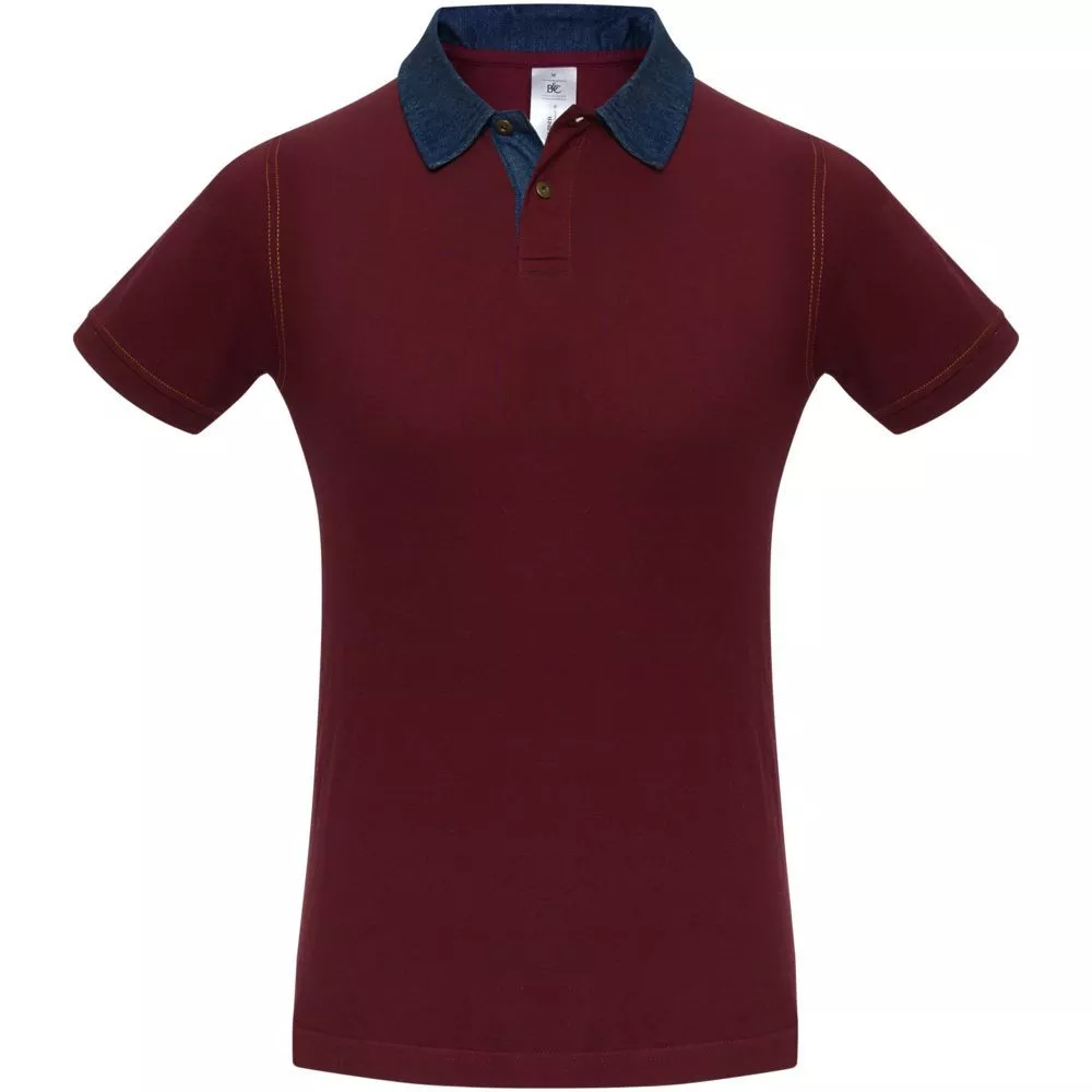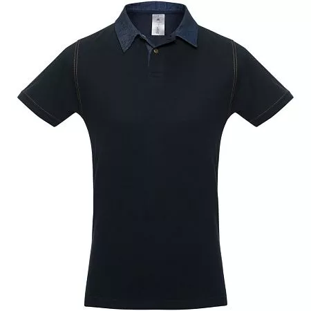 Рубашка поло с джинсовым воротником и контрастной отстрочкой.