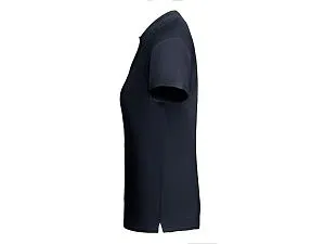 Приталенная женская рубашка поло с коротким рукавом из органического хлопка, сертифицированного OCS. Воротник и манжеты из риба 1x1. Разрез с застежкой на 2 пуговицы. Усиленные закрытые швы в воротнике. Боковые разрезы в швах.