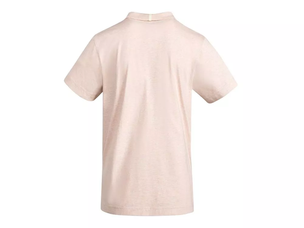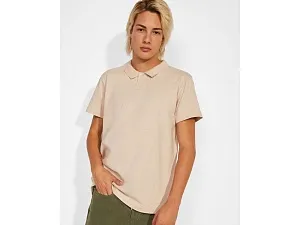 Рубашка поло с коротким рукавом из однотонного трикотажа. Воротник в рубчик 1x1. Разрез с застежкой на 1 пуговицу. Усиленные закрытые швы в воротнике. Боковые разрезы на подоле. Контрастная тесьма в елочку по низу рукава и на воротнике. Логотип Roly внутри.