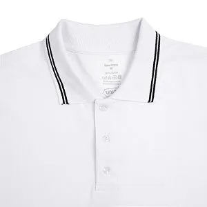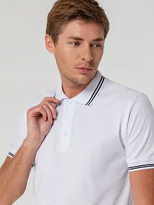 - Контрастные полоски черного цвета на воротнике и на манжетах