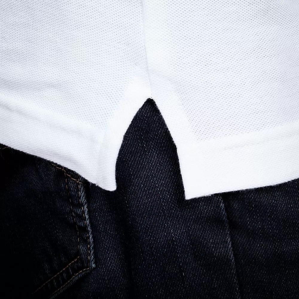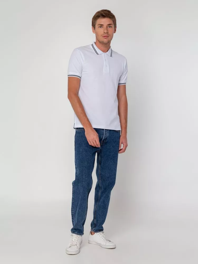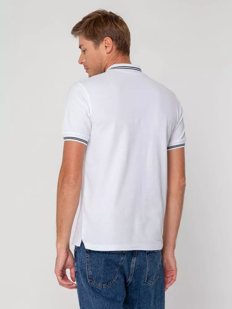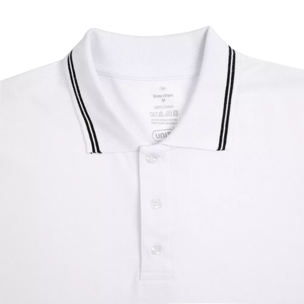 - Контрастные полоски черного цвета на воротнике и на манжетах