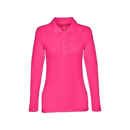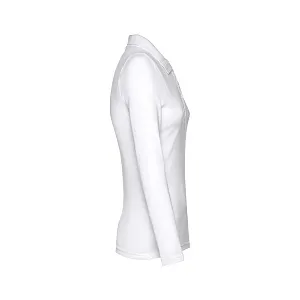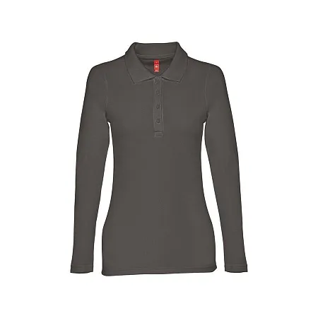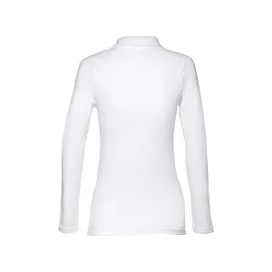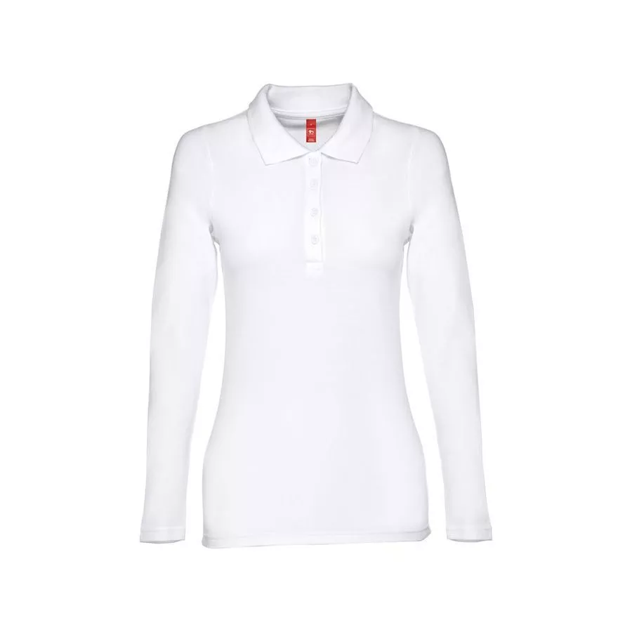 Женская рубашка-поло с длинным рукавом из хлопковой ткани-пике. Полотно футболки упругое и гладкое благодаря обработке ферментами "enzyme wash" и сохраняет форму при стирке. Модель приталенного илуэта. Благодаря манжете из риба 1х1 рукав смотрится очень аккуратно. Воротник также выполнен из риба 1х1, внутри ворота - укрепляющая тесьма по горловине. Планка с 3 пуговицами в цвет основной ткани изделия. Запасная пуговица на ярлыке во внутреннем боковом шве.