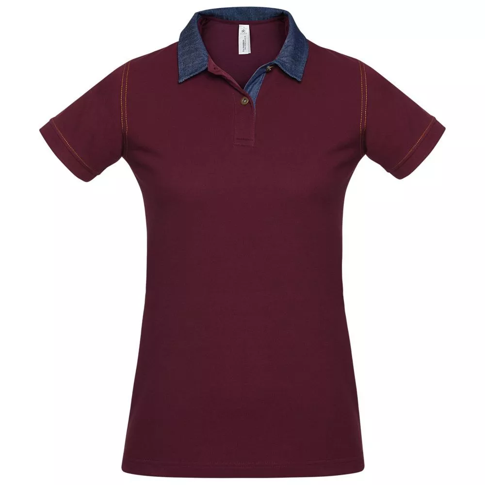 Рубашка поло с джинсовым воротником и контрастной отстрочкой.