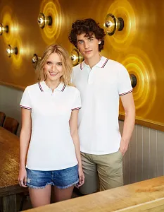 Контрастные полоски на воротнике, по низу рукавов, внутри бокового разреза и на внутренней стороне ворота.