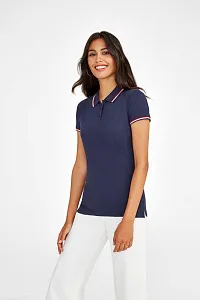 Женская рубашка поло с боковыми швами. Планка с 3 пуговицами. Воротник и нижний край рукавов в резинку 1х1. Плетеная укрепляющая тесьма по вороту.