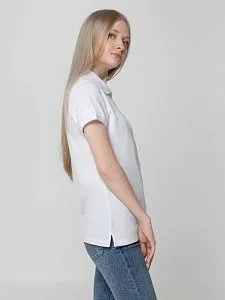 Приталенная женская модель с разрезами в боковых швах по низу изделия. Ворот с лайкрой, 3 пуговицы на планке в тон изделия. Активное крашение полотна — изделие сохраняет цвет надолго.
