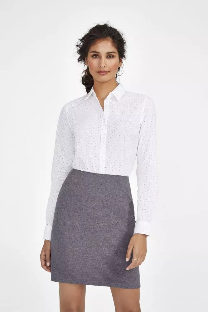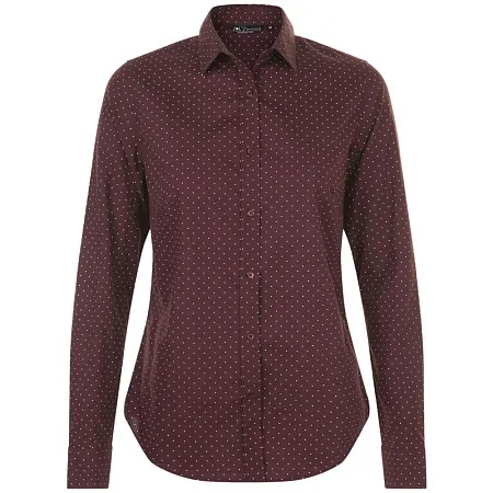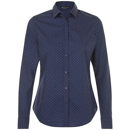 Модная рубашка с печатным рисунком в горошек, которая прекрасно впишется в современный корпоративный стиль.Приталенная модель с нагрудными вытачками, маленьким классическим воротничком, планкой с 7 пуговицами тон в тон и манжетами на 1 пуговице с разрезом «капуцин».