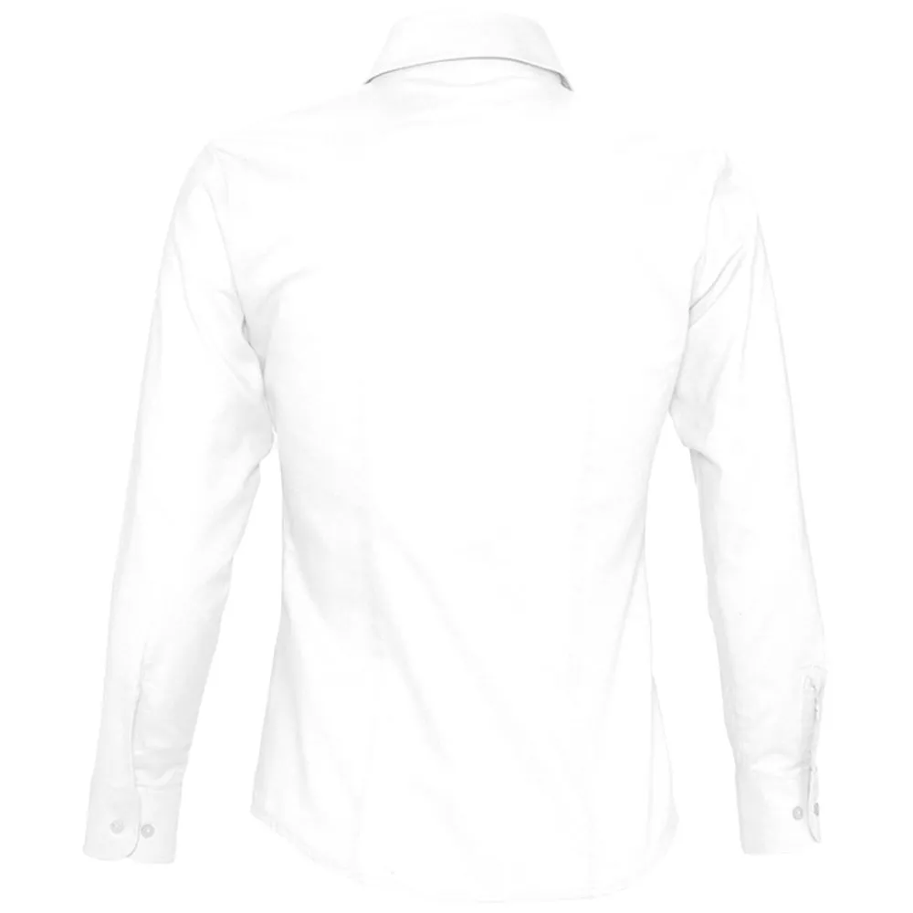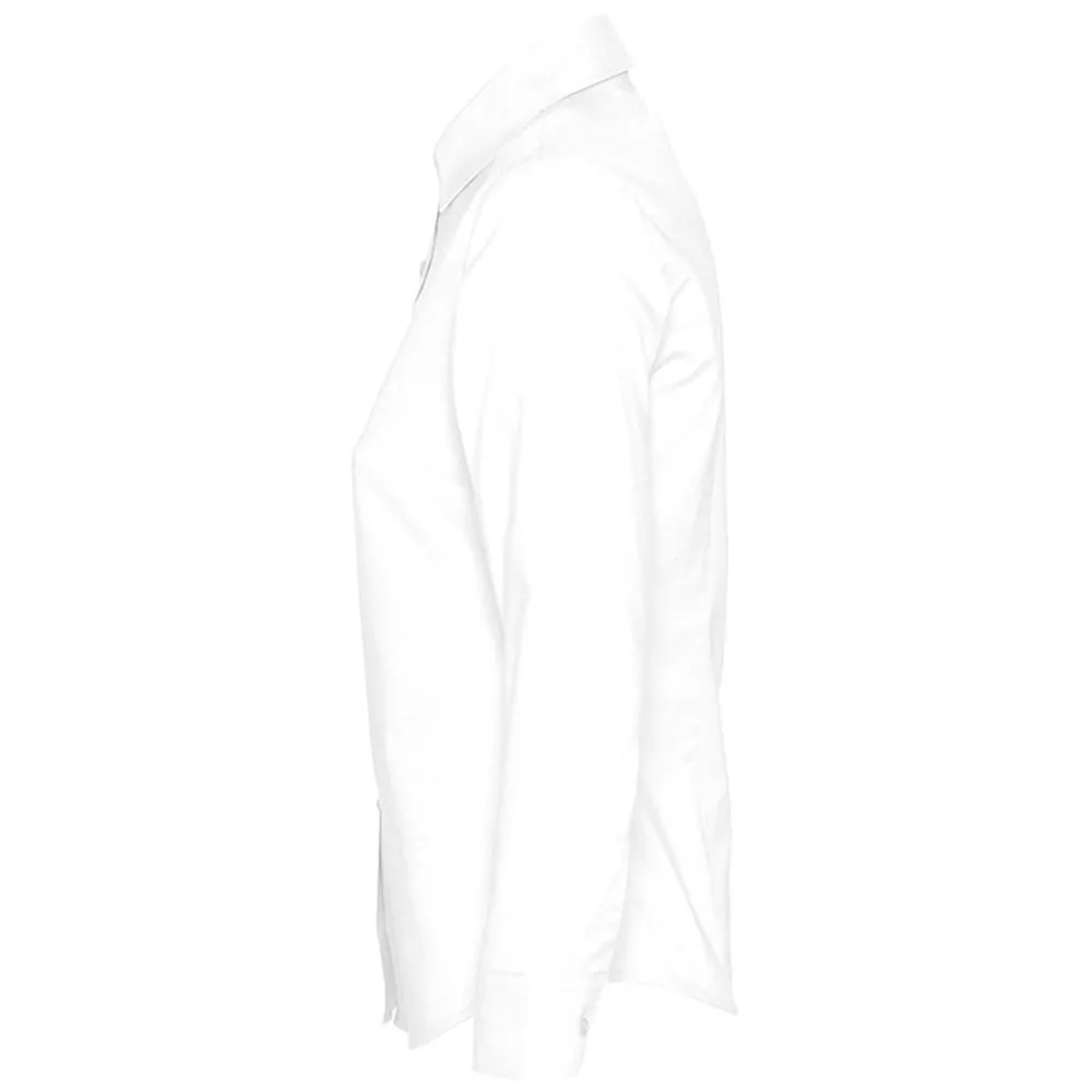 Рубашка из ткани «Оксфорд». Вытачки на груди, классический воротник, регулируемые закругленные манжеты, планка с семью пуговицами в тон.