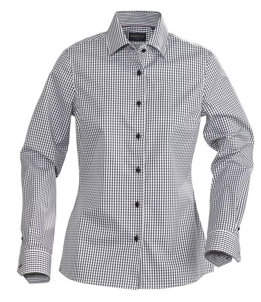 Приталенная женская рубашка из гребенного хлопка качества Easy Care (легко утюжить). Классический узор в клетку с контрастной отделкой оборотной части воротника, изнанки манжет и планки пуговиц. Упрочненные швы воротника и манжет. Прошитые складки на спине.