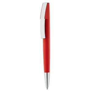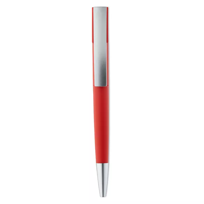 Пластиковая поворотная шариковая ручка с контрастным серым клипом и кончиком. Матовая отделка. Синие чернила.