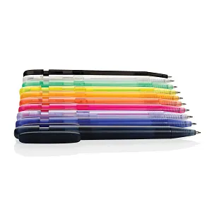 Легкая яркая ручка Devin поднимает настроение одним своим видом. Она изготовлена из переработанного пластика ABS, покрытие корпуса приятное на ощупь. Немецкие чернила Documental обеспечивают плавное письмо: его длина составляет 1000 метров, а ширина — 1 миллиметр. Содержание переработанных материалов составляет 86% от общего веса изделия. Сертифицировано GRS. Эта сертификация полностью контролирует путь поставок переработанных материалов и гарантирует их наличие в изделии.