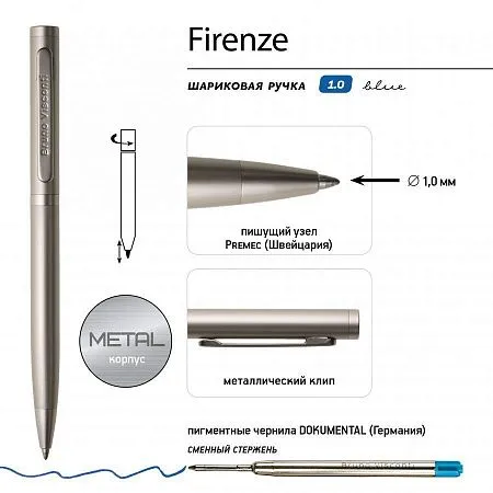 РУЧКА "FIRENZE" ШАРИКОВАЯ АВТОМАТИЧЕСКАЯ, ЗЕЛЕНЫЙ МЕТАЛЛИЧЕСКИЙ КОРПУС 1.0 ММ, Шариковая металлическая ручка из коллекции «FIRENZE» от Bruno Visconti - бизнес-аксессуар, с которым вы всегда будете чувствовать себя уверенно и комфортно. Лаконичный дизайн, строгость формы, прочный металлический корпус в цвет вороненой стали, подчеркнут статус владельца ручки. Ручка автоматическая, с легким поворотным механизмом подачи стержня. Надежный пишущий узел d 1,0 мм (от швейцарского производителя Premec) гарантирует высокое качество так же, как и пигментные чернила Dokumental (Германия). Благодаря им писать ручкой «FIRENZE» одно удовольствие – она мягко скользит по поверхности бумаги, оставляя ровную, четкую линию.
