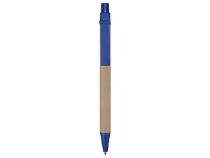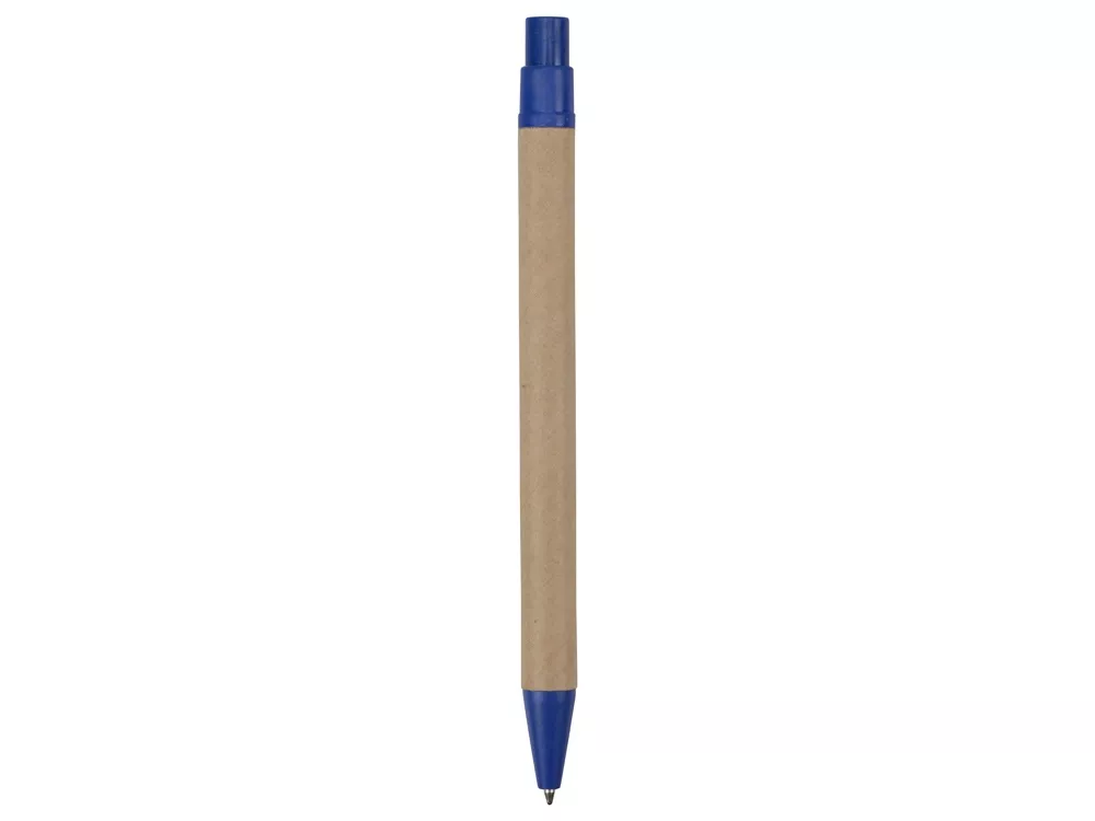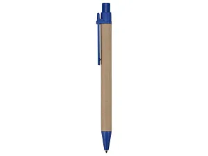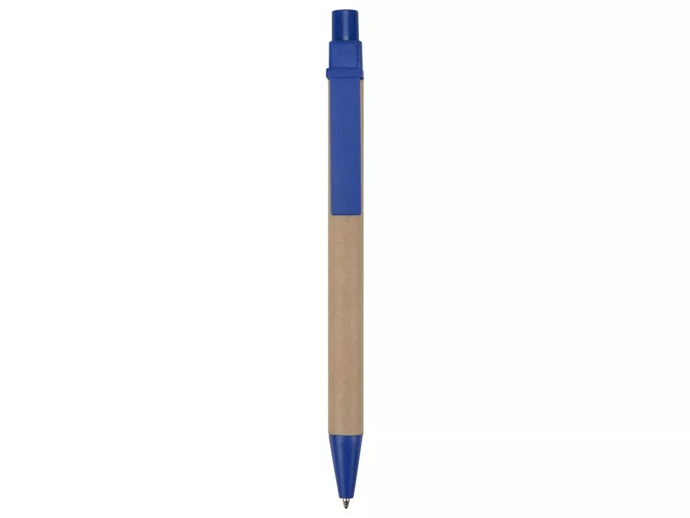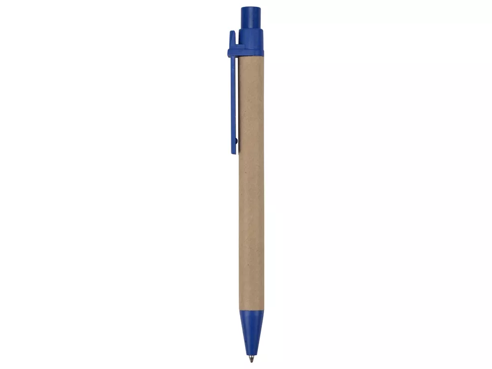 Шариковая ручка с нажимным механизмом. Удобный корпус сделан из переработанного картона. Клип, кнопка и носик ручки на 50% состоят из пшеничной соломы, на 50% — из переработанного пластика. Настоящая находка для тех, кто предпочитает использовать изделия из биоразлагаемых материалов и заботится о сохранности окружающей среды.