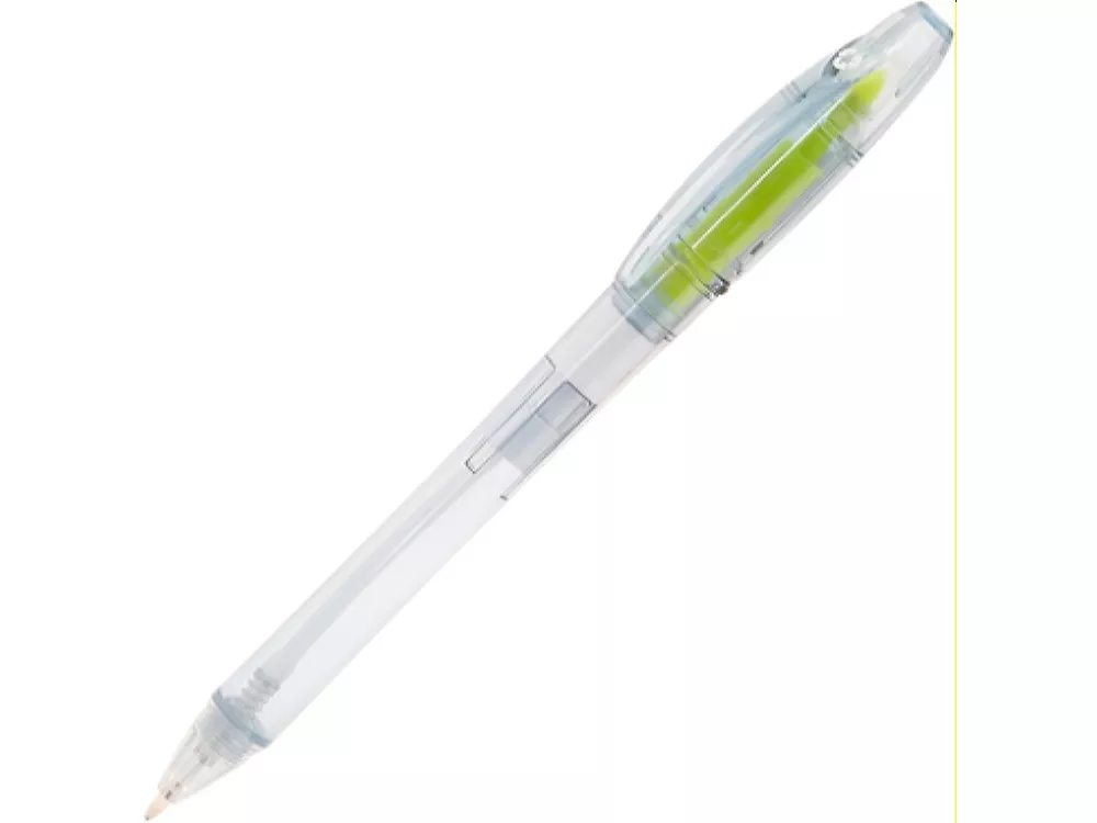 Ручка/маркер с синим прозрачным корпусом и маркером доступна в трех флуоресцентных цветах.